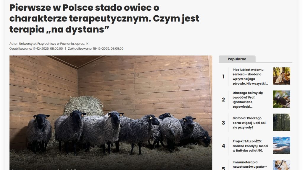Coraz więcej badań pokazuje, że obserwowanie przyrody realnie obniża poziom stresu i lęku. Nad rzeką Wełną naukowcy z Uniwersytetu Przyrodniczego w Poznaniu sprawdzają to w praktyce, tworząc pierwsze w Polsce terapeutyczne stado owiec.